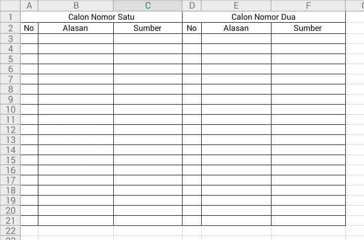 Nah, silahkan isi tabel tersebut dengan alasan alasan yang menurut anda merupakan hal baik maupun hal buruk dari masing-masing kandidat maupun tokoh atau partai pendukungnya. Misalnya “calon nomor satu berjasa menyelamatkan PT Kiani Kertas” atau “calon nomor dua berjasa merelokasi PKL tanpa konflik” atau “kedua calon dituduh dekat dengan amerika”. Nah, karena saya yakin sebagian besar dari kita bukanlah orang dekat kedua calon, itulah sebabnya kolom ” sumber” dibutuhkan.